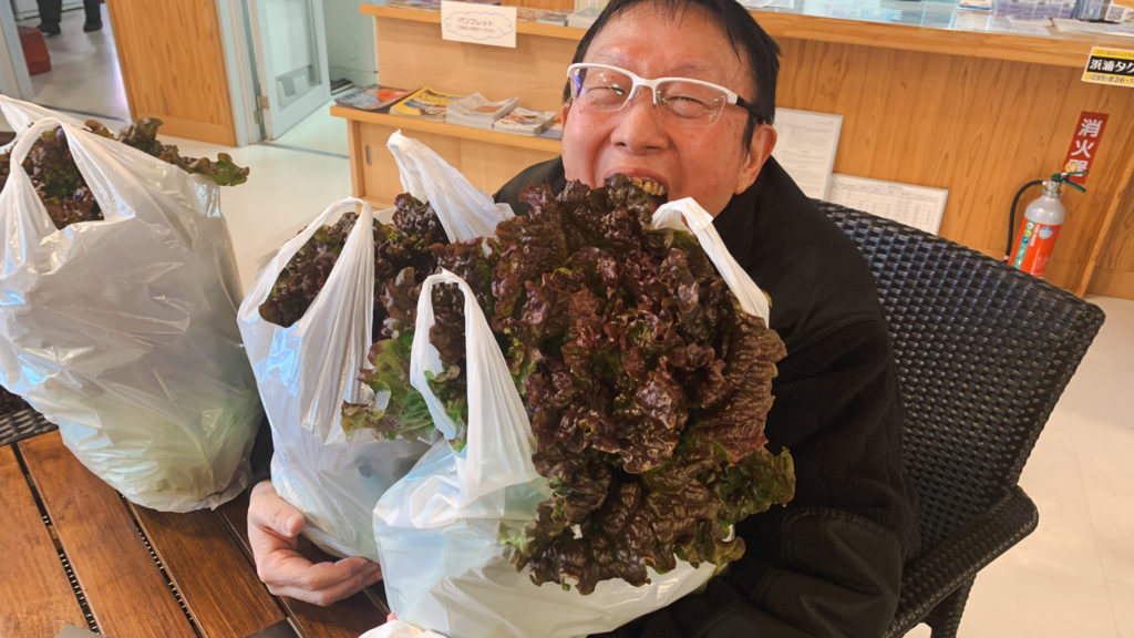 とても素晴らしい時間はあっという間に過ぎ去ってしまうものです。帰りには苓北町のレタスやサニーレタスそしてキャベツを沢山いただきました。実は苓北町のレタスは国内でも有名で、東京などに多く出荷されております。長崎県内では佐世保バーガーや長崎ちゃんぽんとも提携しているそうです。