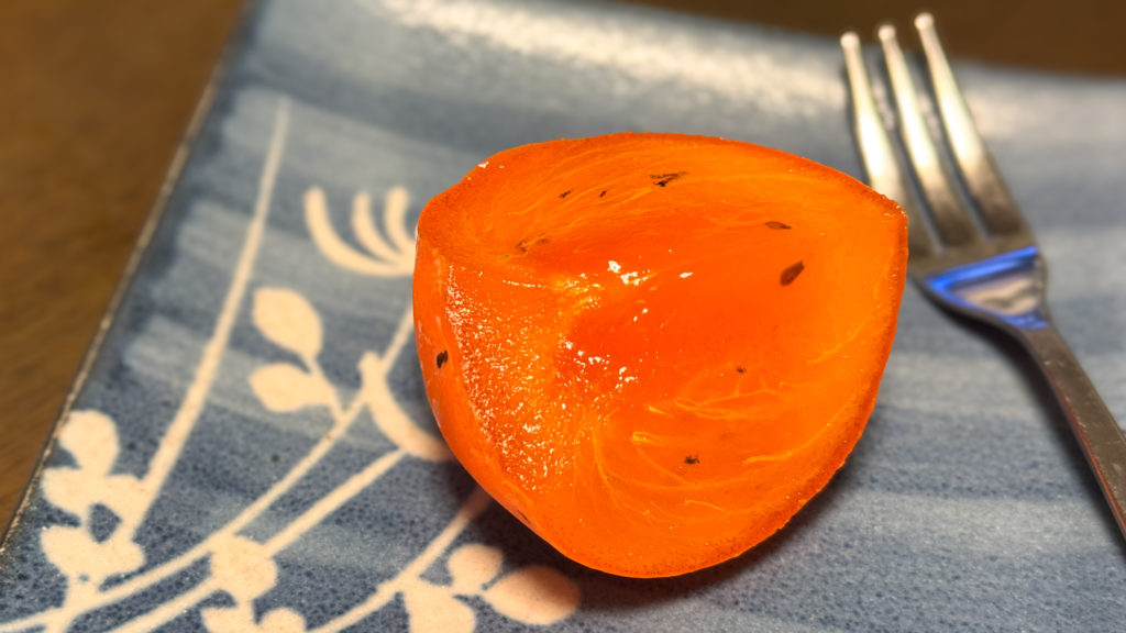 そんな折、最近凝っているのは、安い柿を1個だけ買い、数日間置いておいて熟成させたものを冷蔵庫で冷やし、食後に頂くことです。