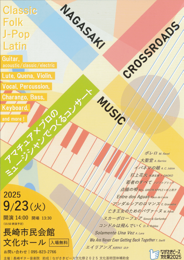 9/23火曜日は長崎市民会館文化ホールでコンサートがあり、私の生徒さんが出演されます(^^♪